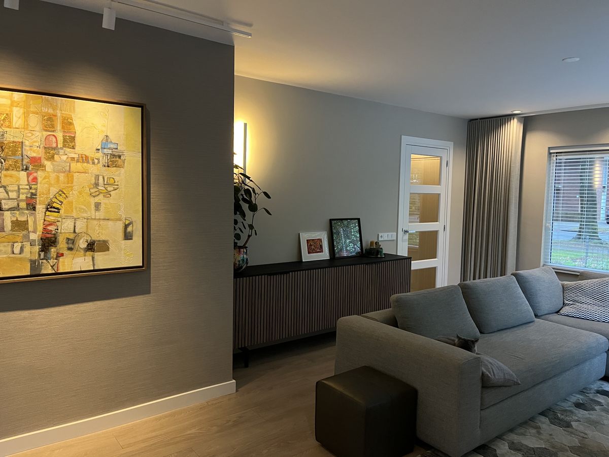 De basis van deze woning was al prachtig, maar de echte sfeer en warmte ontbraken nog. Door een zorgvuldig kleur- en materialenadvies, aangevuld met passende meubels en verlichting, is het huis getransformeerd tot een plek waar rust en gezelligheid samenkomen. Een interieur waarin de bewoners zich nu écht thuis voelen.