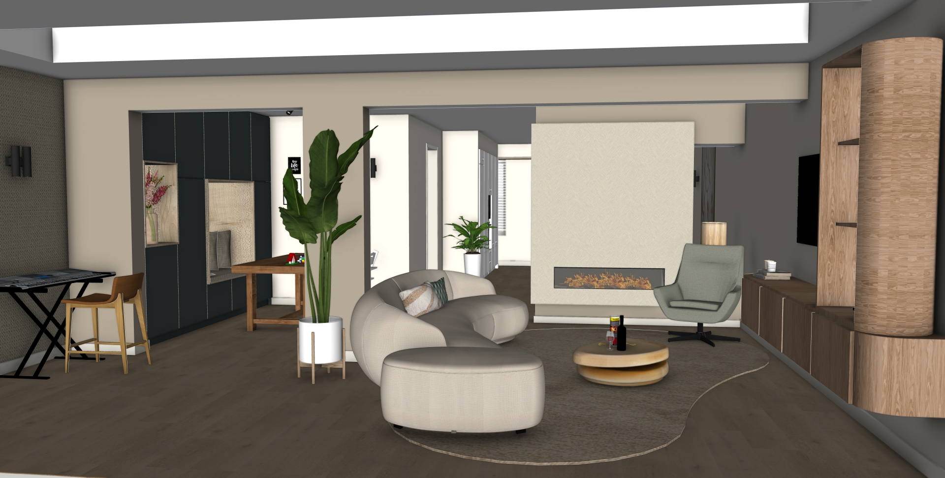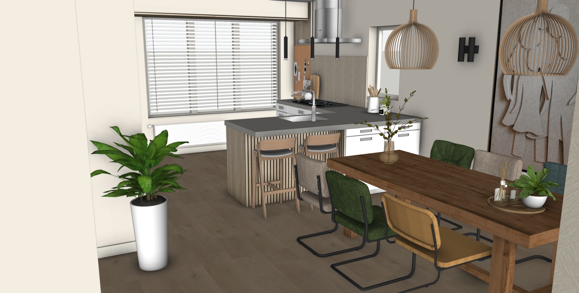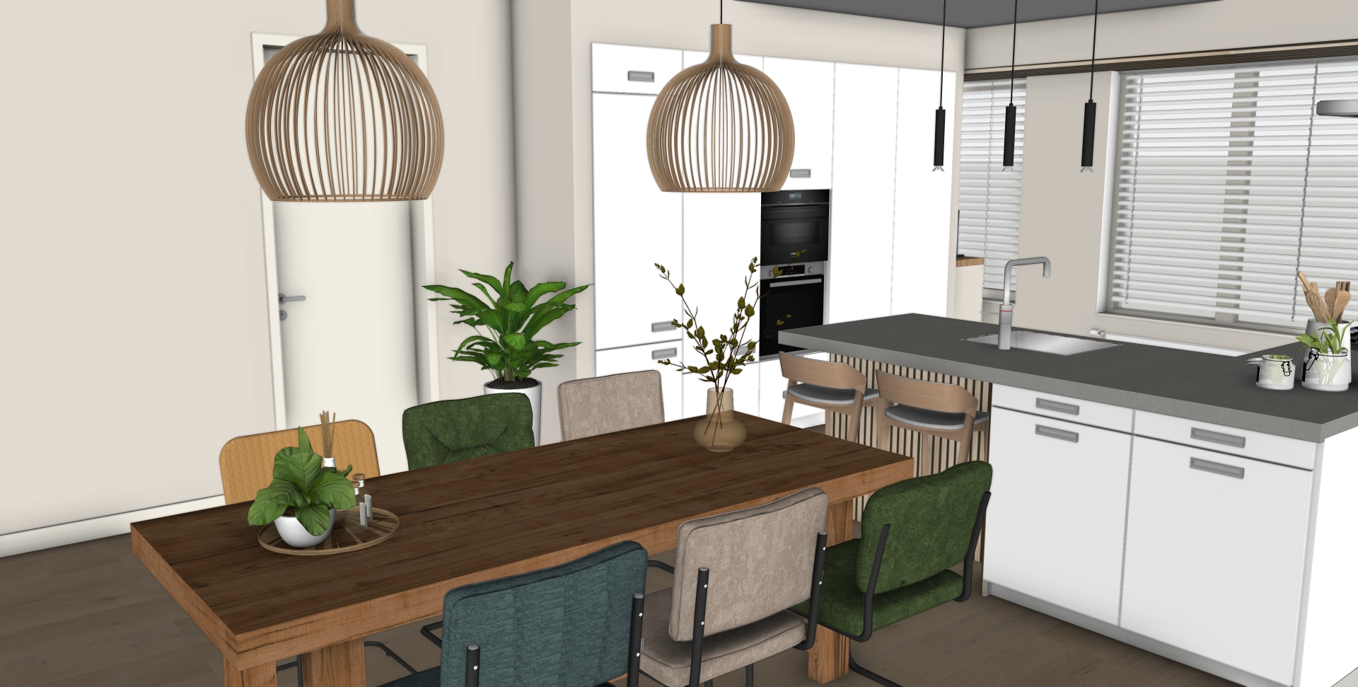 Voor deze nieuwe woning heb ik een compleet advies uitgewerkt op het gebied van kleur, materialen en indeling. Daarbij is zoveel mogelijk gebruikgemaakt van de bestaande meubels, aangevuld met zorgvuldig gekozen nieuwe elementen. De keuken was nog in goede staat en is behouden, maar door enkele doordachte aanpassingen voelt deze nu volledig betrokken bij de rest van het interieur. Zo is er een samenhangend en rustig geheel ontstaan dat perfect aansluit bij de bewoners en hun manier van wonen.